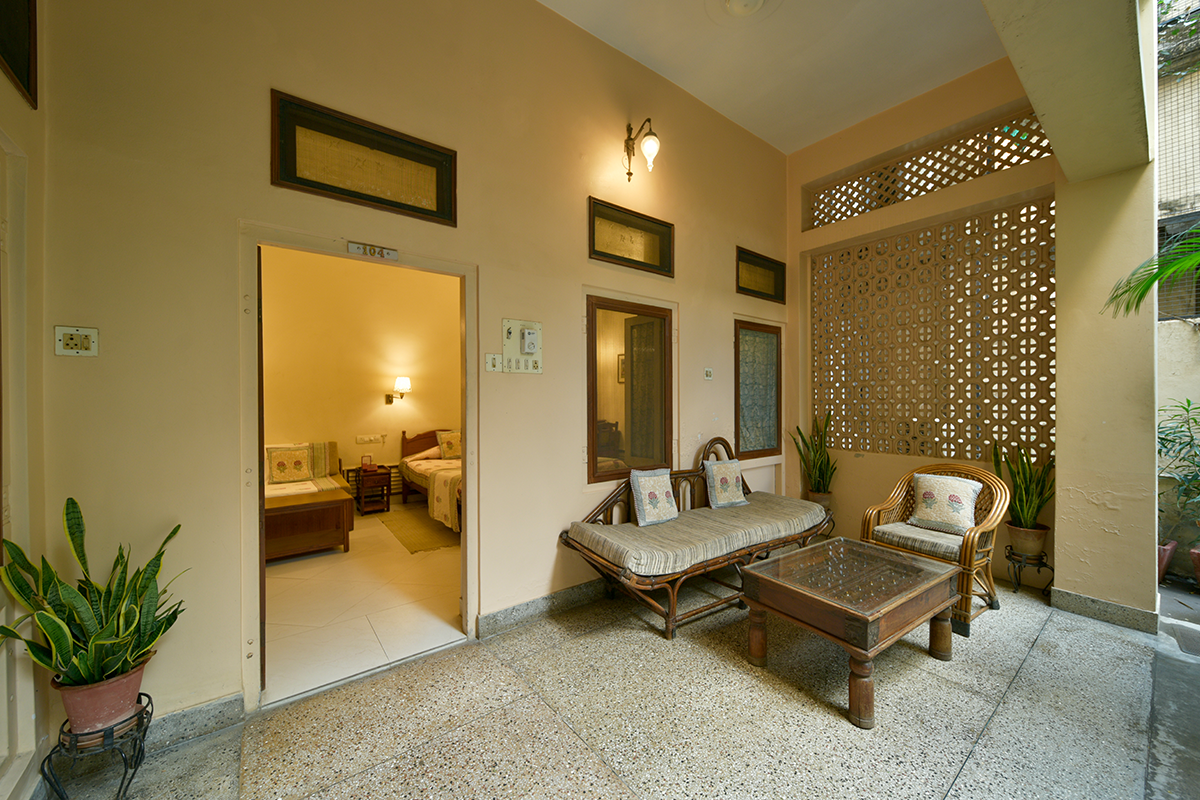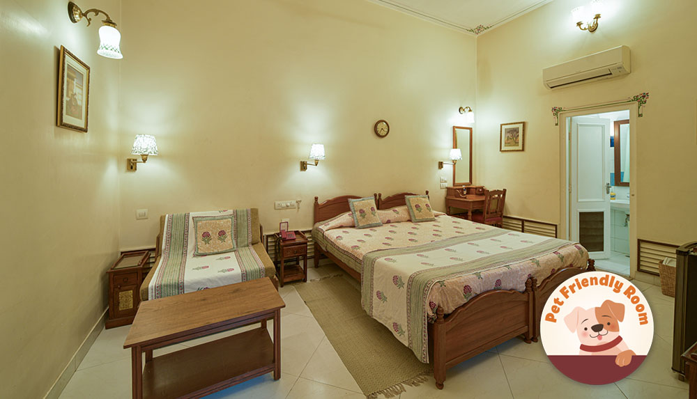 Hotel Arya Niwas is happy to offer a large, comfortable room with balcony sit-out for guests with pets.