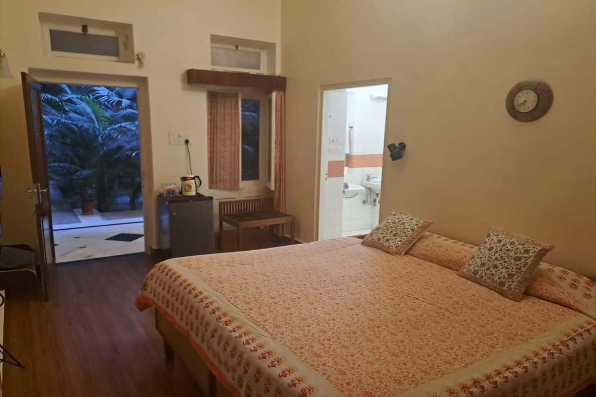 Rooms without plastic: Our rooms have wooden trays, glass bottles, steel / brass buckets, cloth laundry bags, handmade paper room folders, terracotta dispensers for hand wash and bathing soap / shampoo / moisturizer, toilet roll from recycled paper, handmade paper note pad and pencils from recycled newspapers. We are constantly looking at ways to cut on plastic usage in our operations. Available on request: yoga mat, iron with ironing board, newspaper, hair dryer.